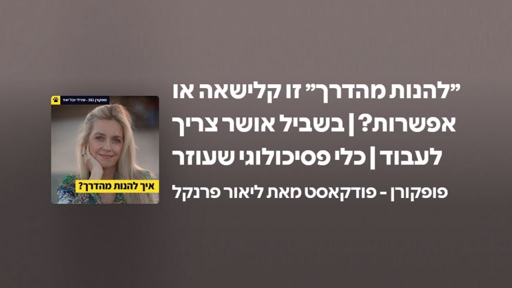 אני מזמינה אתכם לקרוא את הבלוג שלי, או להאזין לפודקאסט "להנות מהדרך" אם אתם תקועים בפקק כזה או אחר. אני אוהבת את עבודתי ורואה בה ייעוד ושליחות – לעזור לאנשים לחיות מתוך רווחה נפשית, ולעבור תהליכי שינוי חיוביים.