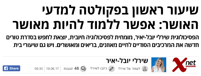 שיעור ראשון בפקולטה למדעי האושר: אפשר ללמוד להיות מאושר